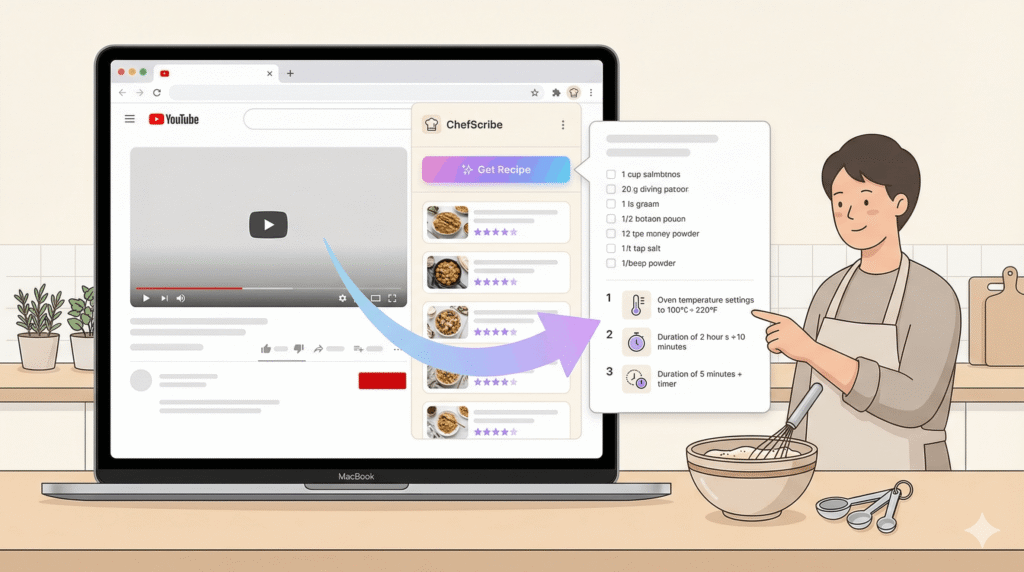 For example, the ChefScribe Chrome extension converts YouTube cooking videos into structured recipes.
