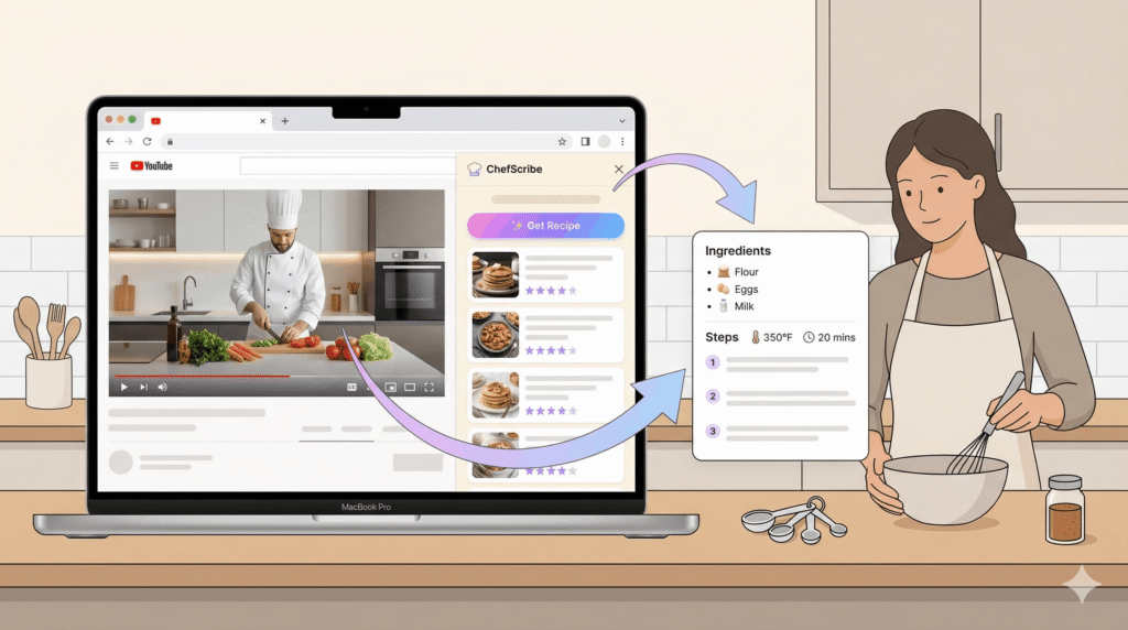 Turning cooking videos into structured recipes removes that friction and lets you focus on the food instead of the timeline bar.